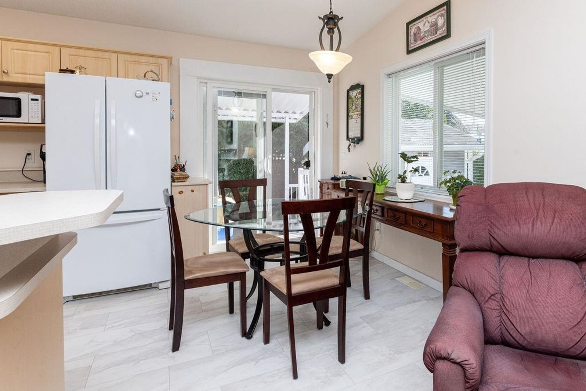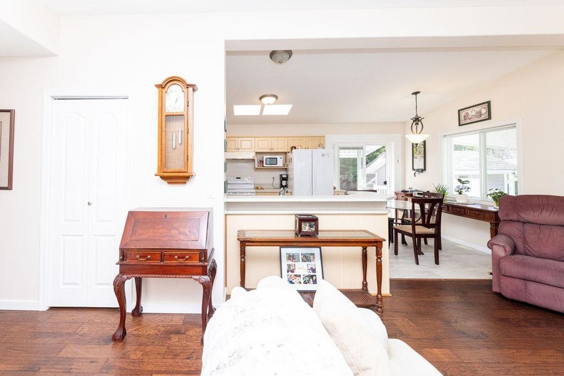 Welcome to the relaxed and carefree lifestyle of the Big Maples community. This lovely home offers a bright open kitchen and spacious floor plan, new hardwood floors, vaulted ceilings and gas fireplace. The large back deck is covered and the yard is fenced. Tons of light and very low maintenance gardens at the end of a no thru road. Plenty of storage in the 4 ft crawl space and on a slab for extra security, lots of parking and a detached shed as well. Within walking distance to Mission Park or the popular Davis Bay beach , plenty of trails around and enjoy walking along the Seawall. Close to restaurants, coffee shops and shopping. Everything is at your finger tips. Come have a look!