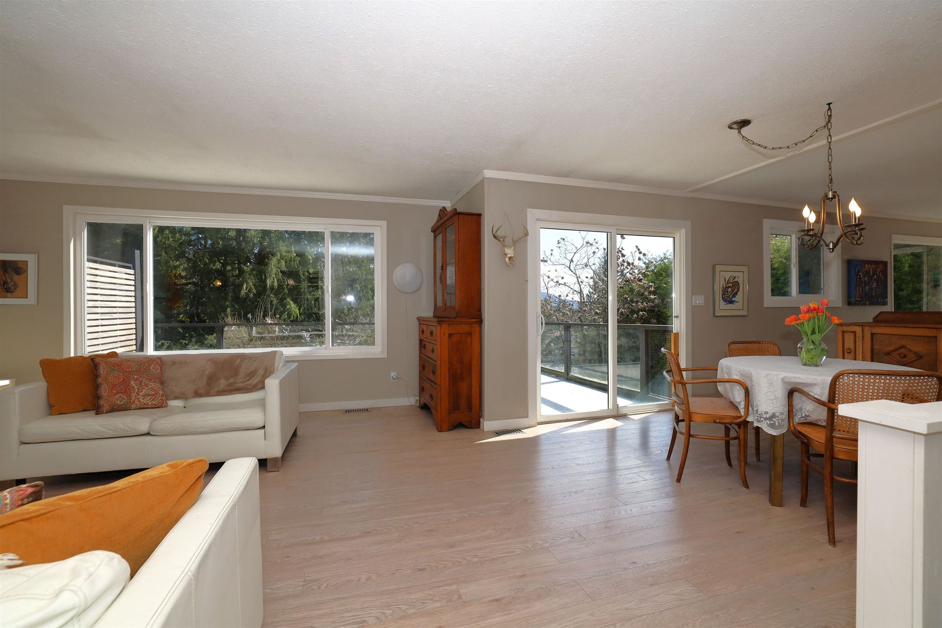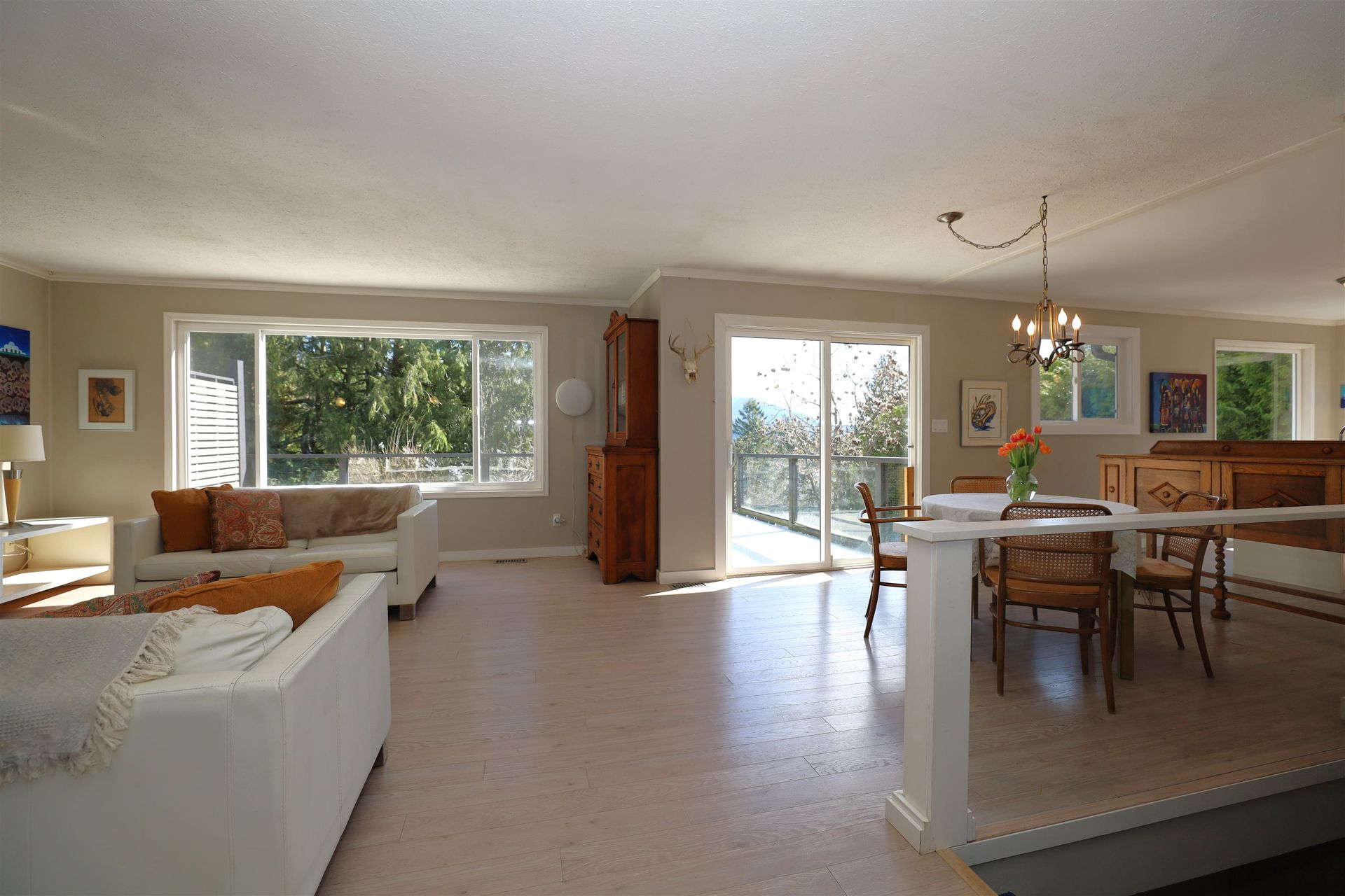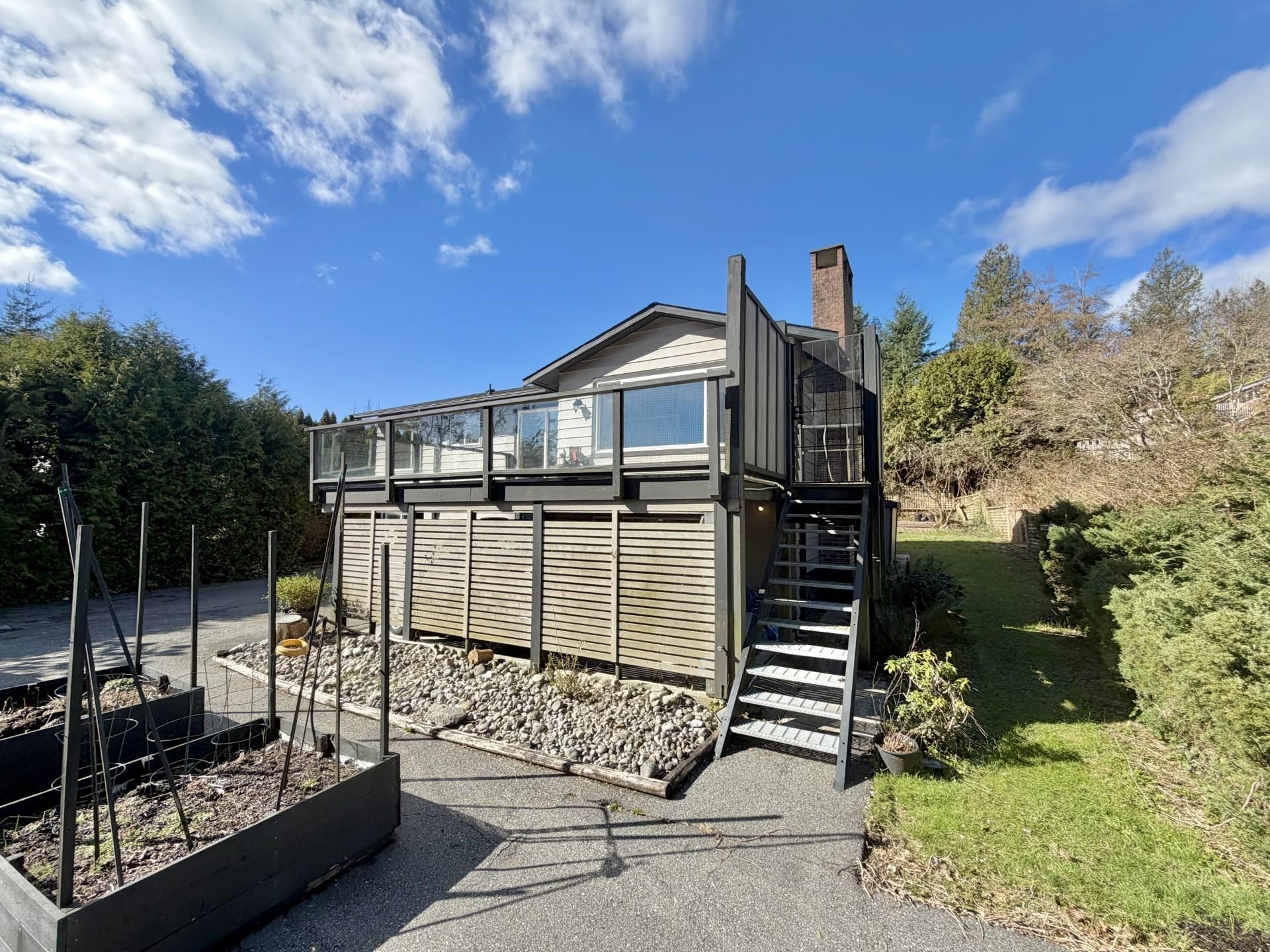 Private family home in Gibsons! Panhandle driveway sets the home back off the road giving a lovely quiet space, with a peek-a-boo view. Upgraded windows throughout let in lots of natural light. Spacious deck off the upper living space gives you plenty of extra space to enjoy as the weather starts to warm up. 3 bedrooms and 2 bath upstairs, in the main living area, and a 2 bed 1 bath suite below. Raised garden beds are ready to be planted this spring!