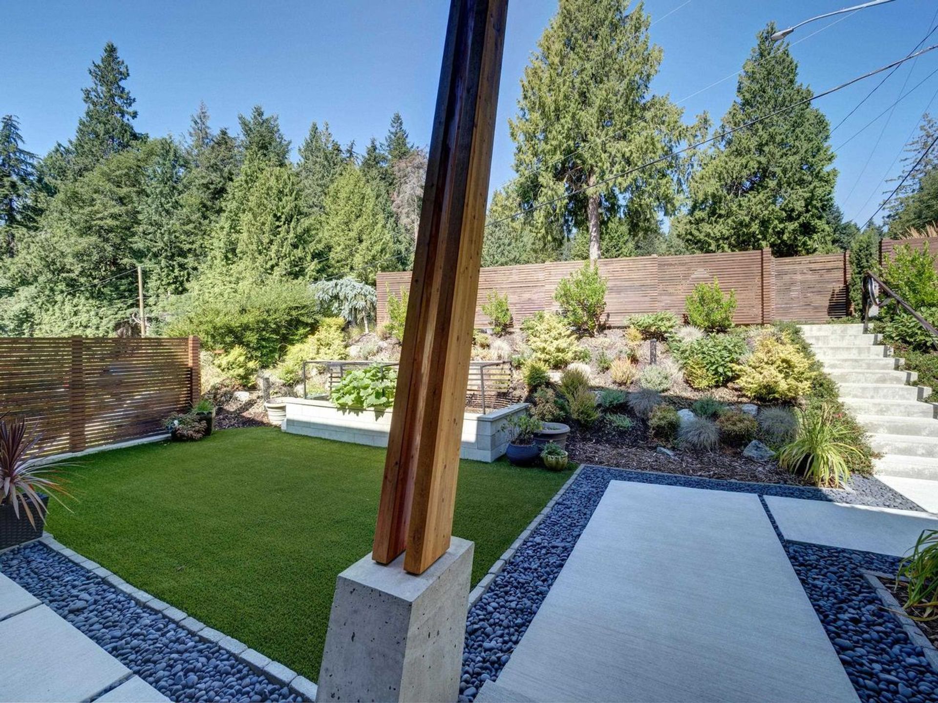 - View: Seasonal ocean, tree canopy